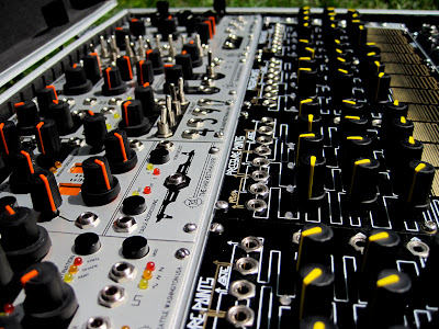 Harvestman Nuclear FootballThe one and only (beside's Scott's personal case) Harvestman Nuclear Football. $1,400 (modules in the pic are not included). The utility panel at the bottom has mults, attenuators, dual ¼ to ⅛ converters for output, a latching gate output, and a trigger pushbutton. Also a very Harvestman-like quote in the middle (see the detail picture in my Flickr set below). Please give this beautiful case a good home more pictures here