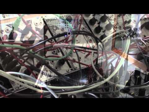 Audio sources are MFB triple oscillator and SynthTech E350/Doepfer A137. MakeNoise QMMG and Intellijel Quadra provide the backend for the 4 voices.