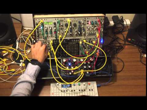 Demora: Teenage Engineering OP1 keys and melody into Make Noise Phonogene (broken echo mode) then in the Demora w/sync coming from the grain out of the phono, sparse pluck coming from Mutable instruments braids fed in too."