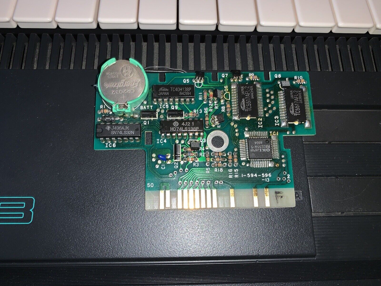 Also the memory cartridge must be put in the slot with the battery facing towards the keyboard"