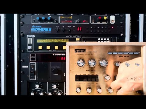Do people still have stereos at home, with two speakers? The SWTPC Psych-Tone synthesizer is running through the ADR Pan Scan, and its stereo outputs are hard-panned on the Mackie Onyx 1640 mixer. The Eventide H3000B is on an auxiliary send, fed by both channels. The Pan Scan rate is close to, but not the same as, the rate of the Psych-Tone sequence, which creates the random feel of the automatic panning. The H3000B delay fills the center of the stereo field. I recorded the same sequence in three videos, each with a different range setting, and they are overlaid here."