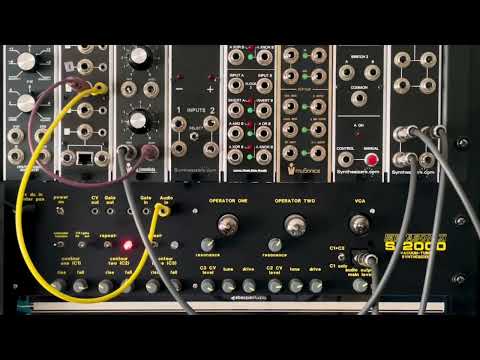 "The Metasonix S-2000 sounds like a pretty cheerful creature with both contour two and contour three engaged, but gets more angry when contour three is turned off. A lot of that raspiness is due to feedback. The S-2000 audio output is multiplied by the Synthesizers.com Q124, then a copy goes to the Mackie Onyx 1640, with spring reverb from the Paia 6740 and stereo reverb from the Alesis MIDIVERB II, which is what we hear in the video. Another copy of the S-2000 output is sent through the STG soundlabs Attenuators, to the Lower West Side Studios M830 Signal Distribution System (just to convert it to 3.5mm), into the audio input on the S-2000 so it hears itself hearing itself."